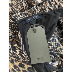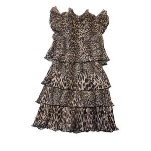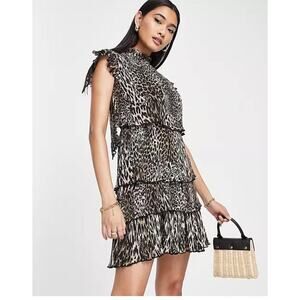 ALL SAINTS Antheia Kiku Plissé Leopard Print Tiered Mini Dress 0