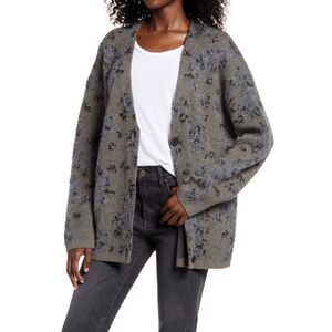 ALL SAINTS Camo Cardigan Sweater, Khaki Green/Charcoal Black, Medium (6/8), NWT