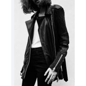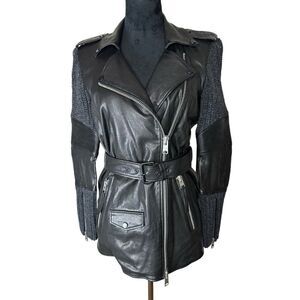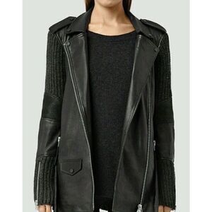 ALL SAINTS Denell Leather Knit Biker Moto Coat Jacket Size 4