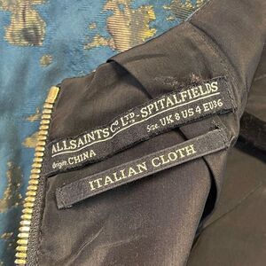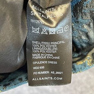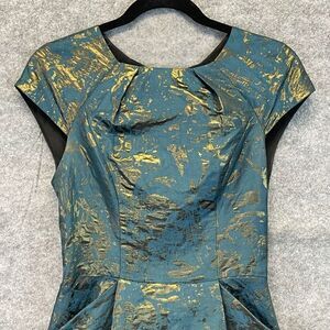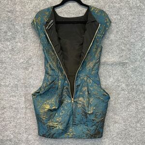 ALL SAINTS Dress Size 4 Opulence Teal Bronze Jacquard Cap Sleeve Cocktail Mini