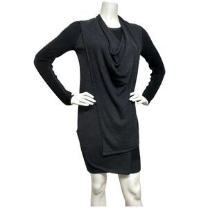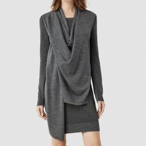 ALL SAINTS Drina Merino Wool Draped Convertible Sweater Knit Dress BlackGray 4 S