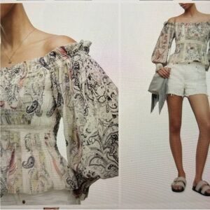 ALL SAINTS Lara Makutu Top Soft Pink Off the Shoulder Shirt Paisley Sz 6 NEW