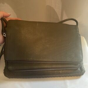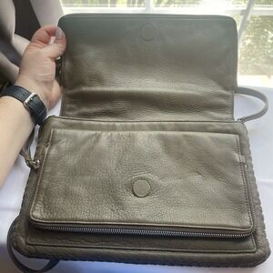 ALL SAINTS MINK GREY GREEN CROSSBODY LARGE CLUTCH HANDBAG COMPARTMENT BAG PURSE