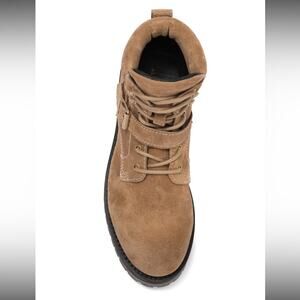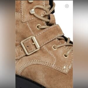 🍇 ALL SAINTS “PAULINA” Tan Suede Buckle Combat Boots.
