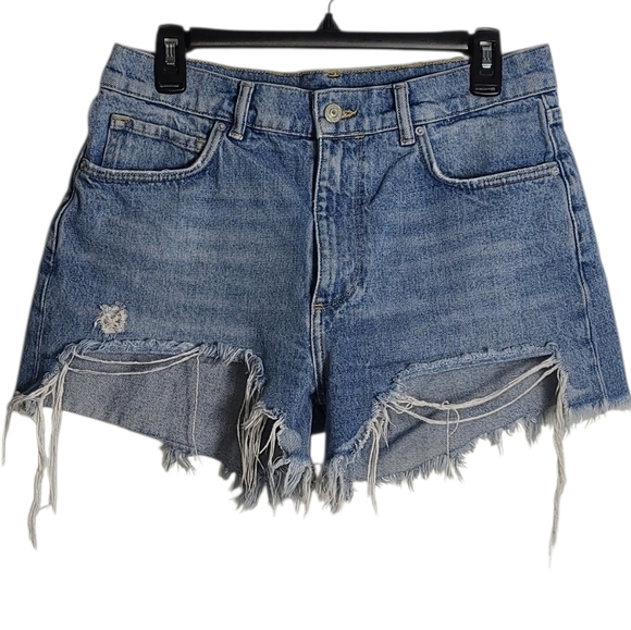 ALL SAINTS Remi Cut Off Frayed Distressed Light/Med Wash Denim Shorts Size 28