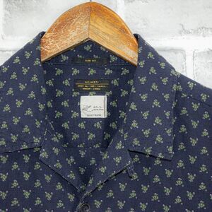 ALL SAINTS Rikka Camp Collar Shirt Blue print short sleeve Men's Sz Small