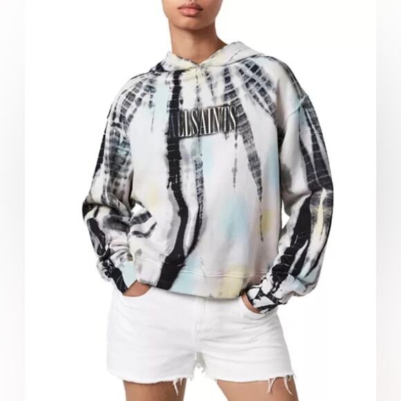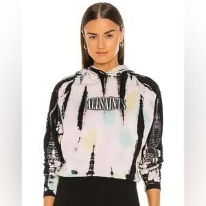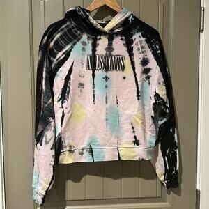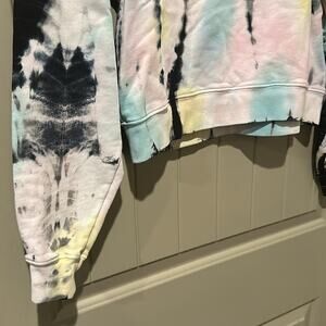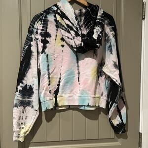 Pippa Multi-Color Tie Dye Crop Hoodie, size 2. French terry lining, 100% cotton. Front screen print graphic. Preowned condition. Can fit XS and Small.