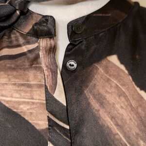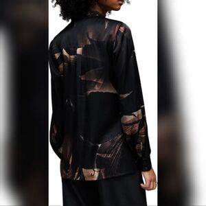 ALL SAINTS US10 Toni Iris Silk Blend Button Front Neck Tie Long Sleeve Shirt