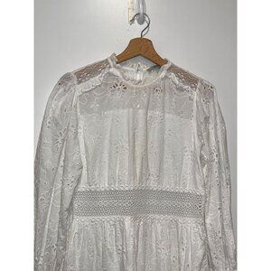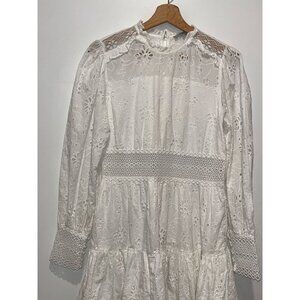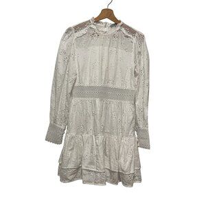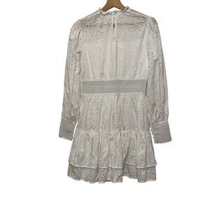 AllSaints White Long-Sleeve Tiered Annasia Broderie Mini Dress Women's Size 4