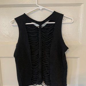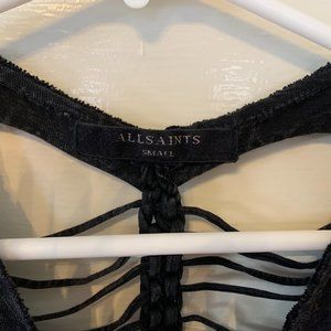 ALL SAINTS dark grey (almost black) top. Braided front, ladderback on the back. Size small.