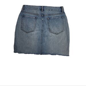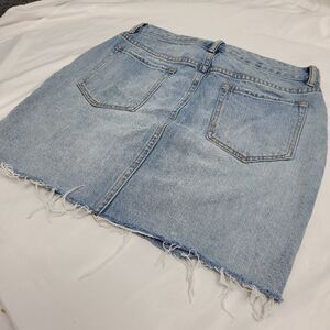 Cutoff belted light wash denim mini skirt from All Saints. "Bette buckle skirt". Small spot on the back pocket. Perfect festival wear! Cotton.