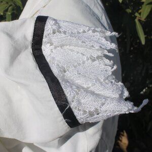 ALL THAT JAZZY White black Maternity Blouse Size Medium Long Sleeve Collar Lace