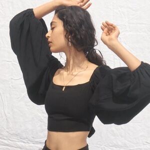ALL THAT REMAINS valentine top black linen size 10 Med balloon sleeve tie top