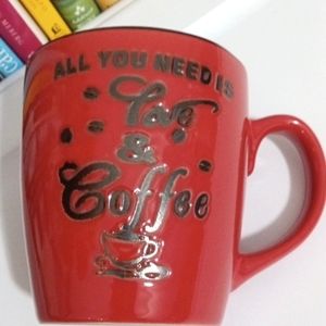 ROYAL NORFOLK All You Need Is Love & Coffee Mug Dark Red Black Lettering and Rim Trim 16oz. Coffee Cup