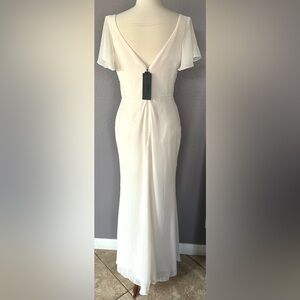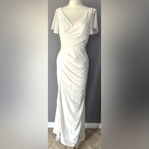 ALLANDWELL Women's Round Neck Long Dress Elegant Wear Size Ivory Open Slit BodyCon