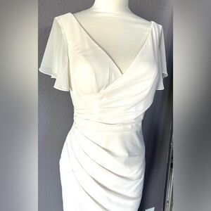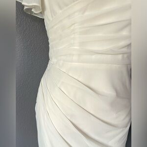 Step out in style with this elegant white ruffle dress. Perfect for any occasion, this dress offers a sophisticated look with its sleek design and delicate ruffle detailing.