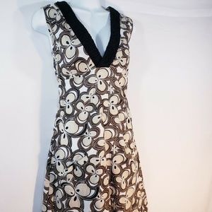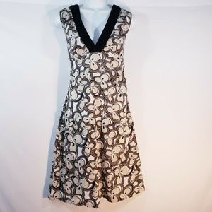 ALLEGRA HICKS Designer Dress Size 4 Pocket Front V neck Retro Cotton print Housewife Style