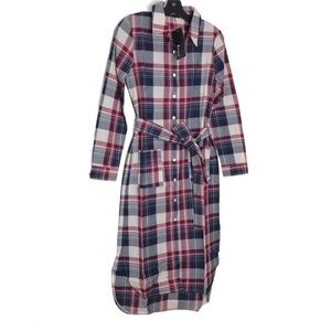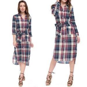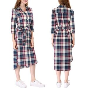 ALLEGRA K PLAID MIDI BELTED SHIRT DRESS SIZE XSMALL