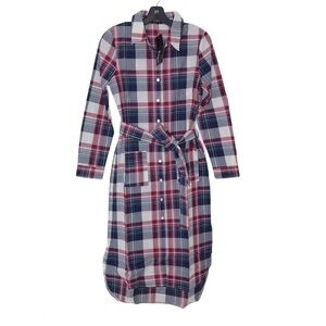 ALLEGRA K PLAID MIDI BELTED SHIRT DRESS 100% Cotton XSMALL NEW