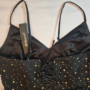 ALLEGRA K Party Metallic Stars Mini Dress/ Spaghetti Strap Sz: L Black/Gold