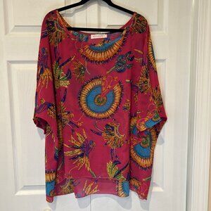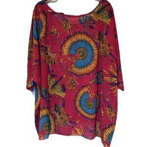ALLEGRA K Womens Kimono Tunic XL Chiffon Tribal Pink Feathers Festival