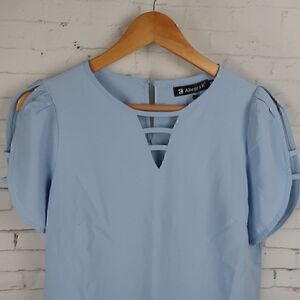ALLEGRA K LIGHT BLUE SHORT SLEEVE ROUND NECK WITH V CUT OUT TOP SIZE SMALL NWT