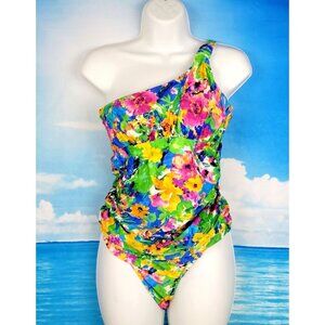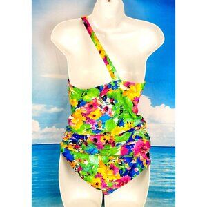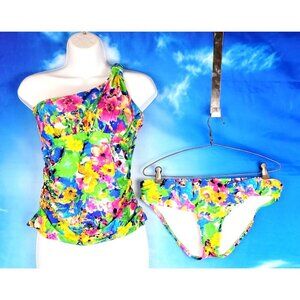 ALLEN B 2 pc. TANKINI Set Swim Bathing Suit ONE SHOULDER Green Floral size 10