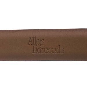 The ALLEN EDMONDS men's belt in size 38 is crafted from polished cobbler leather in a rich brown color. This dress belt features a solid pattern and is lined for added quality and durability. The renowned Allen Edmonds brand ensures a stylish and high-quality accessory for any man's wardrobe, making it a versatile piece for dressing up formal attire or completing a polished look.