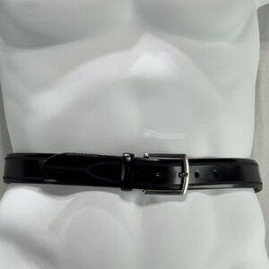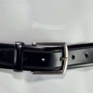 ALLEN EDMONDS Men's Black Leather Belt Handcrafted Silver Buckle Size 44