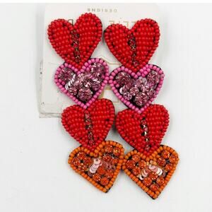 ALLIE BEADS Multi Heart Beaded Drop Earrings in Red ERS3434 3.25 in NEW NWT