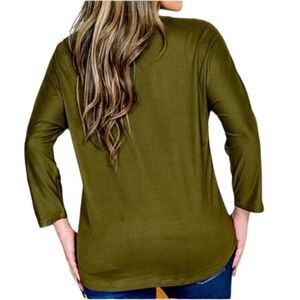 Pretty 3 gold ringed keyhole top with long sleeves and dolphin hem.