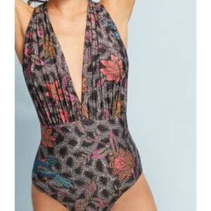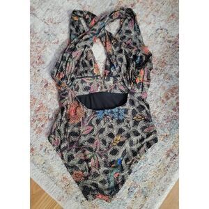 ALLIHOP Zinnias Plunge Floral Print Onepiece Swimsuit S