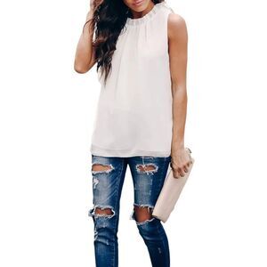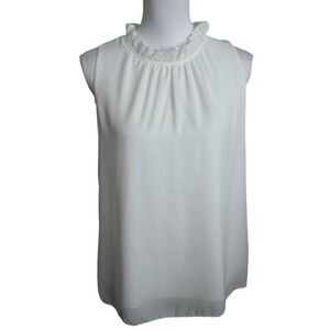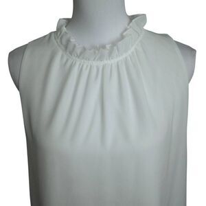 ALLIMY WHITE WOMEN SUMMER RUFFLE TRIM NECKLINE TANK TOPS DOUBLE LINED CHIFFON BLOUSES SZ.M EUC. GORGEOUS BLOUSE IN EXCELLENT USED CONDITION. WORN ONLY 1X.