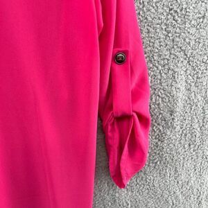 ALL IN FAVOR Perfect Roll Tab Sleeve Tunic Top Hot Pink Barbie Blouse Small