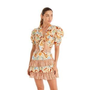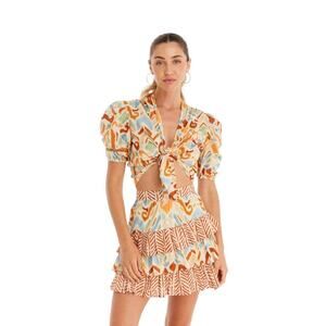ALLISON Ariana Tiered Ruffle Mini Skirt Cream Ikat Mix Size 2 XS XSmall NEW
