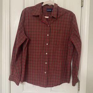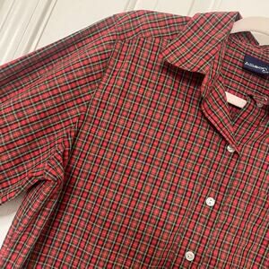 ALLISON & CO • Tartan Plaid Red + Green Gingham Long Sleeve Button Down Shirt