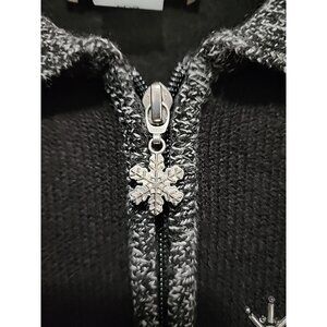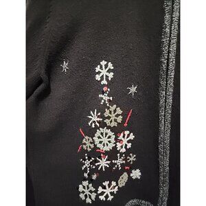 ALLISON DALEY Black Embroidered Snowflakes Sweater Cardigan Beaded Size L Petite