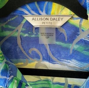 ALLISON DALEY Green Blue Burnout Tropical Floral Button Down Top Abstract 12P