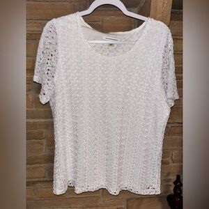 ALLISON DALEY - Women’s White Crochet Short Sleeve Blouse Size M