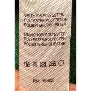 Long sleeve blouse, sheer sleeves. Fully lined bodice. V-neck with tassel ties. Banded four button cuffs. Ruffle neck. Emerald green/black/white floral print.