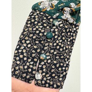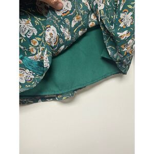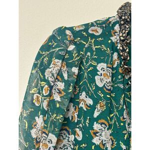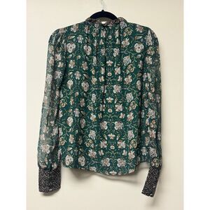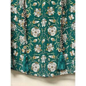 ALLISON NEW YORK Emerald Green Floral Print Tassel Tie Blouse, Sz S