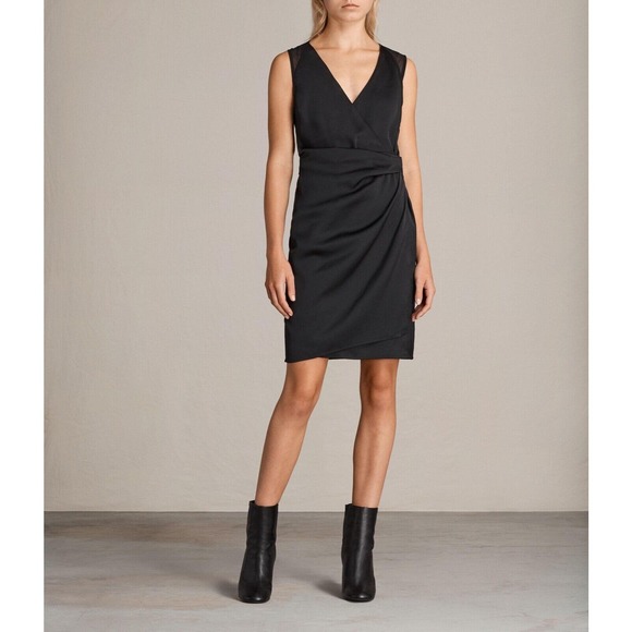 ALLSAINTS Anika Dress In Black V Neck LBD Size 4 Four $268