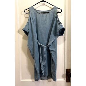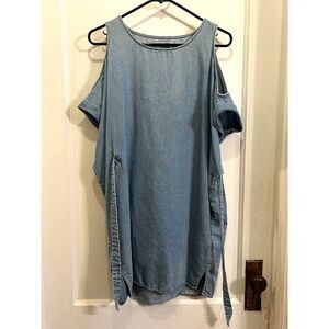 ALLSAINTS Blue Remi Chambray Tie Up Cold Shoulder Mini Dress Women's Size Small