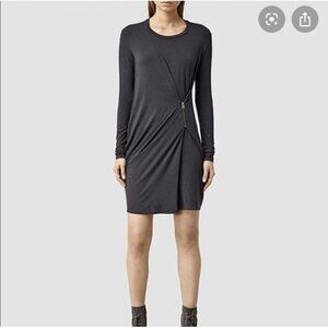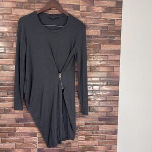 ALLSAINTS Charcoal Gray Dress Womes Size M Front Zip Long Sleeves Viscose Wool