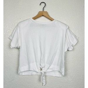 ALLSAINTS Coni Shoulder Pad Tie Front White T-Shirt - Size: Medium - EUC