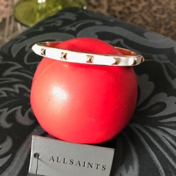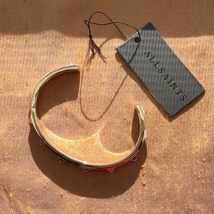 ALLSAINTS Enamel Studded Cuff Bracelet In White + Gold One Size Brand New NWT