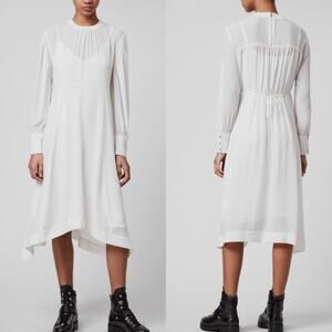 ALLSAINTS Fayre Midi Dress Chalk White Handkerchief Hem NWT Size XS