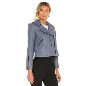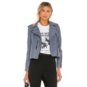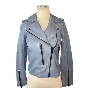 ALLSAINTS Fern Biker Leather Jacket in Flint Blue Size 0 \