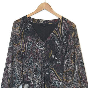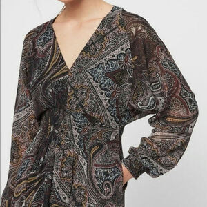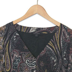 ALLSAINTS Floral Paisley V-Neck Long Sleeve A-Line Mini Dress Boho Romantic L