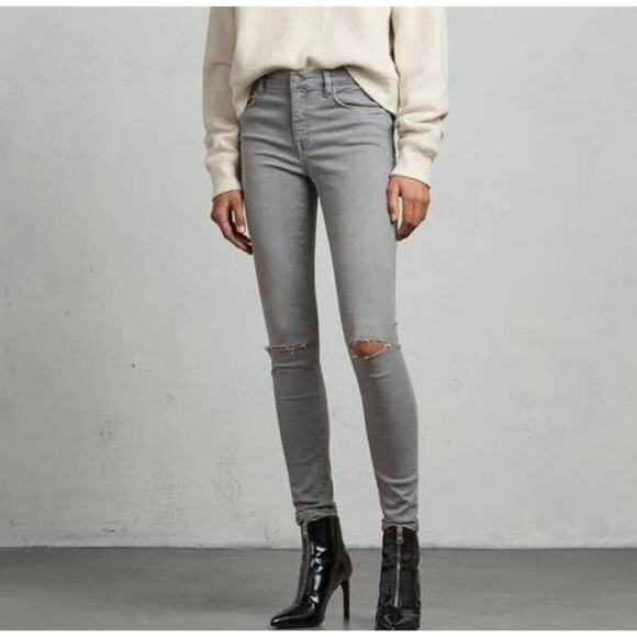 ALLSAINTS Grace Slashed Skinny Jeans In Gray Size 26